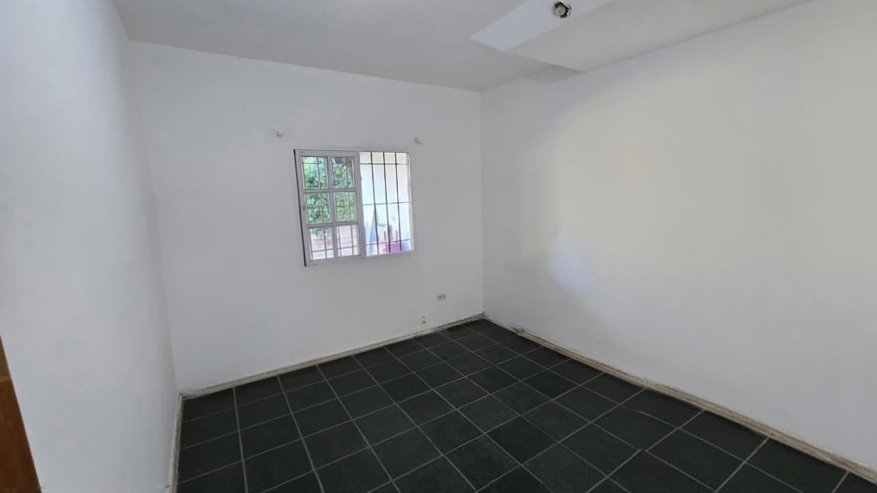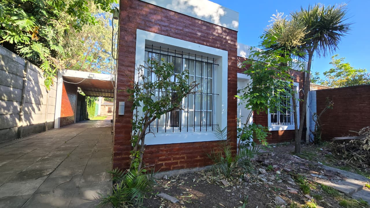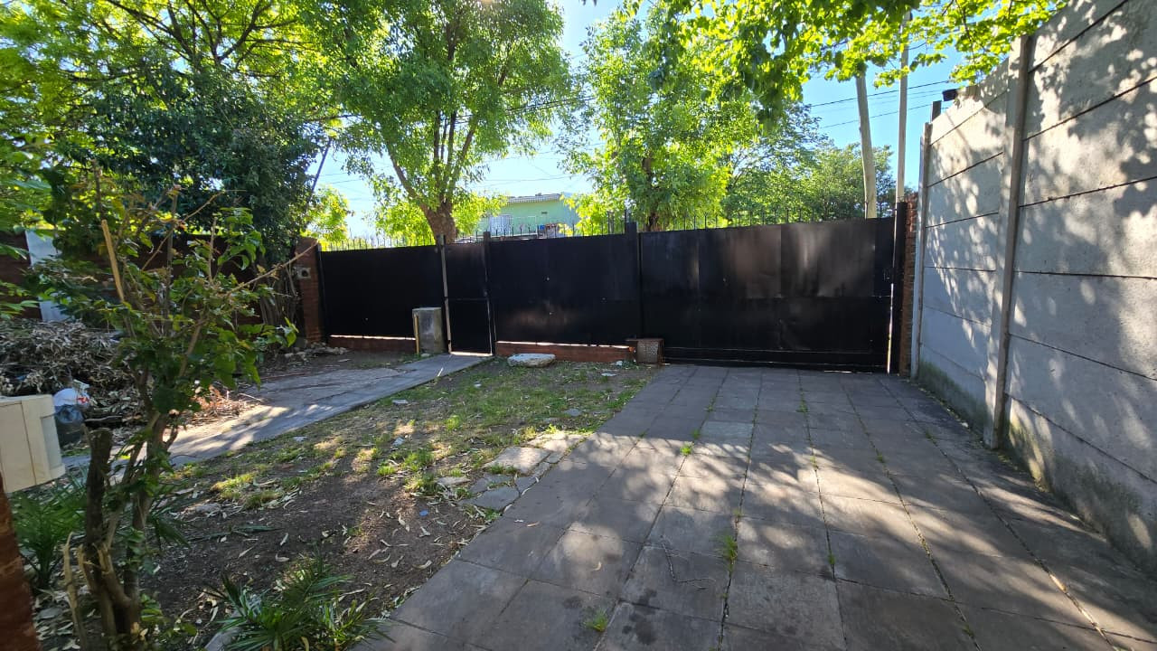 Al ingresar a la propiedad, se encuentra un frente completamente cercado con reja de 2 m de altura y portón corredizo. Cuenta con cochera pasante con espacio vehicular cubierto para dos autos.