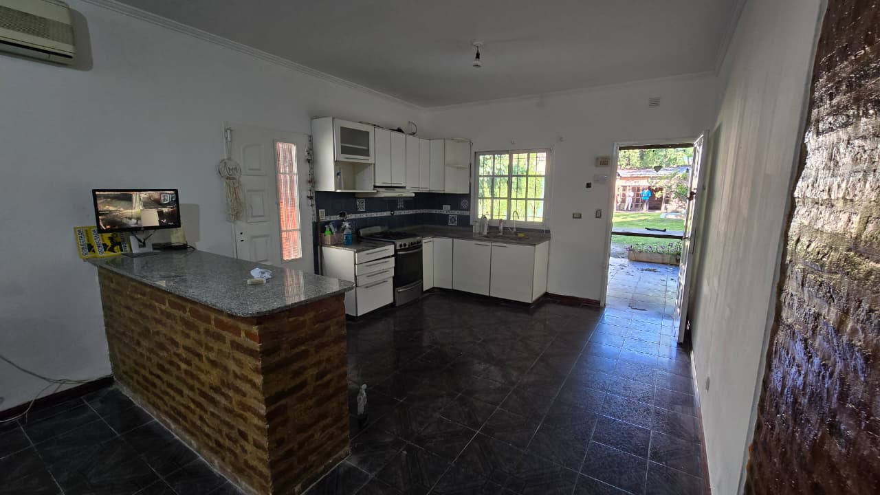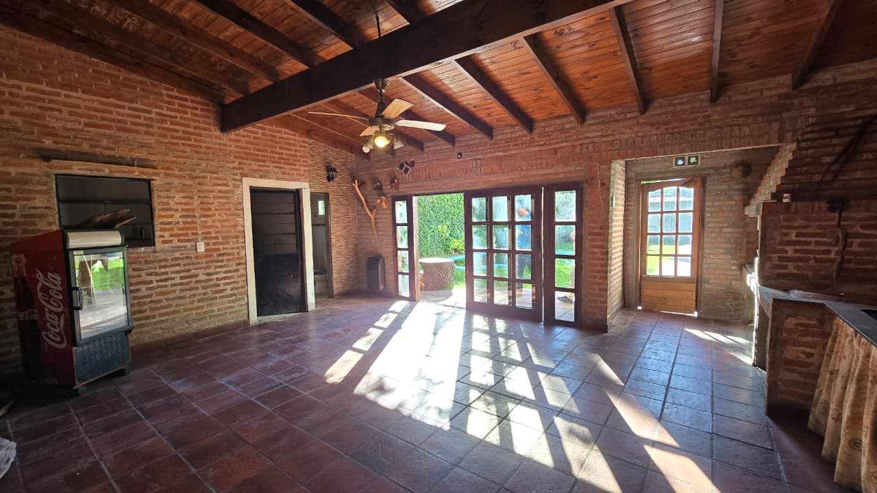 Al fondo se encuentra un quincho de 7,30 m x 5,30 m, con techo de chapa y paredes de ladrillo común. Incluye:
