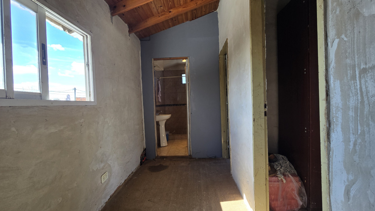 Casa en venta ubicada en Busolini 4263, sobre lote con un pequeño descuento de 0,80 m en el ancho lateral. La propiedad cuenta en planta baja con una superficie cubierta de 6,5 x 10,9 m, distribuida en amplio living comedor de 6,5 x 4 m, cocina comedor de 3,4 x 6,7 m, baño completo de 2,2 x 1,5 m y un dormitorio de 3 x 2,8 m. Desde la cocina se accede por escalera a la planta alta, donde se desarrollan 6,5 x 4,6 m cubiertos que incluyen un pasillo distribuidor, dos dormitorios (2,8 x 3,4 m y 2,8 x 3 m) y un baño terminado de 2 x 1,5 m. La planta alta posee piso de madera, techo de chapa con machimbre y paredes revocadas. Servicios de luz y gas natural. Valor: USD 60.000.