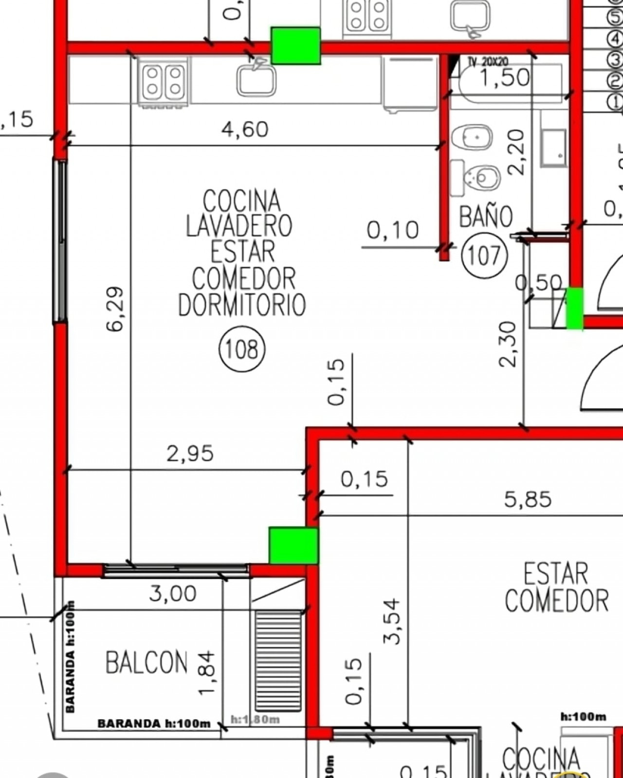 DOS AMBIENTES 45 m² cubiertos+ mas balcón de 6 m²